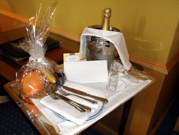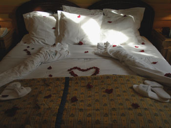 クラシックダブルルームに、ウェルカムシャンパンとウェルカムフラワー、そしてチョコレートマッサージというものがついている、というカップル向けのロマンティックプラン。